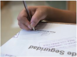 2. Observá que la autoridad de mesa coloque la faja de seguridad, evitando tapar la ranura.