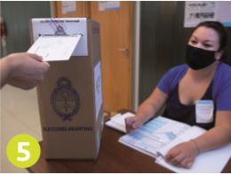 Los/as electores deberán aguardar a ser llamados por la Autoridad de Mesa a una distancia prudencial. (En todo momento deberán utilizar barbijo que cubra nariz, boca y mentón)