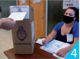 Facilitador o Facilitadora de sanidad | Personal designado por la Justicia Nacional Electoral para garantizar el cumplimiento de las medidas sanitarias. | - Ordenar el ingreso de votantes a efecto de no saturar la capacidad interna del local. - Constatar el uso de tapabocas. - Constatar y hacer respetar el distanciamiento social de 2 metros entre las personas. - Limitar la capacidad de personas en los locales de votación. - Controlar y orientar el respeto de las normas sociales de contacto físico en pandemia (no saludar con besos, abrazos o contacto físico). - Evitar aglomeraciones o reuniones de personas, sobre todo en espacios cerrados. - Hacer respetar el en columna miento en la fila exterior observando las medidas preventivas (Vereda del establecimiento o local). | -Ejercer o compartir las funciones de las autoridades de mesa. -Confeccionar documentación oficial (actas, telegramas). -Participar en el escrutinio de la mesa. |
